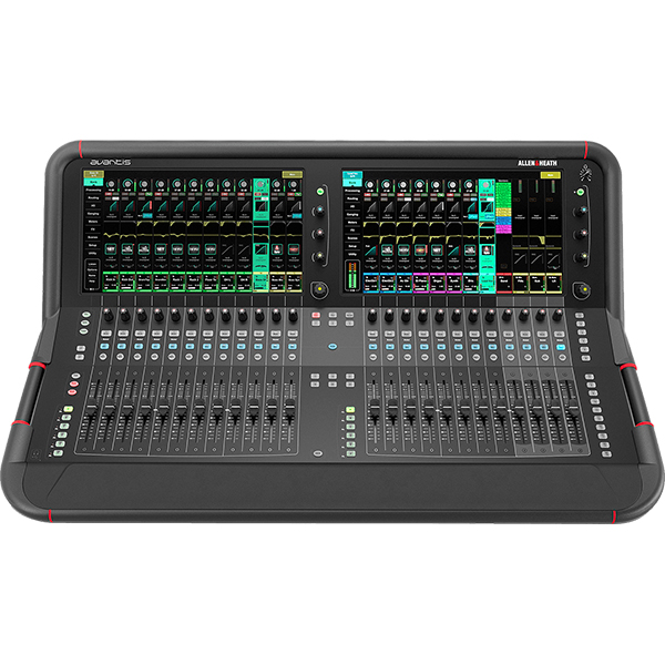 64 canaux, 42 bus, 24 faders, 2 écrans tactiles 15.6'', 12 slots d'effets, 16 DCA, 144 faders assignables, 12 entrées et 12 sorties locales XLR, 1 entrée 2 sorties AES/EBU XLR, latence 0,7ms