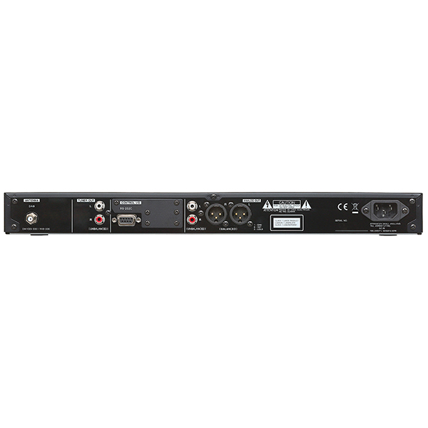 Compatible CD/CD-R/CD-RW/CD-DA/CD-ROM, formats WAV/MP3/WMA/AAC. Sorties sur XLR, RCA, port RS-232 pour le contrôle.