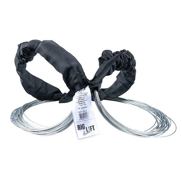 Coefficient de sécurité: 5. Conforme à la directive Machines 2006/42/CE Norme DGUV Vorshrift 17. Gaine PES étroite tréssée avec un fil noir. Numéro de série individuel.