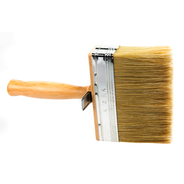Brosse à encoller 140x40 soies blanches, virole nickelée, manche verni