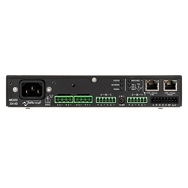 Matrice 4X4 intégrée, DSP, DANTE Puissances : 4 x 80W sous 2 Ohms / 4 Ohms / 8 Ohms / 16 Ohms / 100V. Système power sharing pour répartir la puissance totale sur les canaux selon les applications.